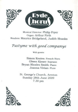 Ryde Chorus St George’s Church Arreton 2009 Programme folded paper leaflet refb101001 Pastyme with good companye