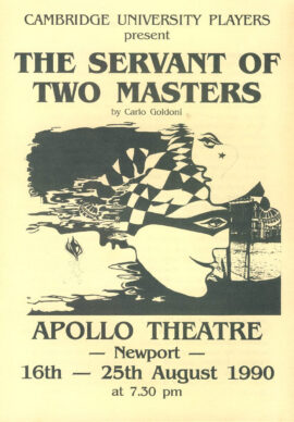 Cambridge University Players THE SERVANT OF TWO MASTERS 1990 Newport Apollo Theatre folded card Programme refb101019