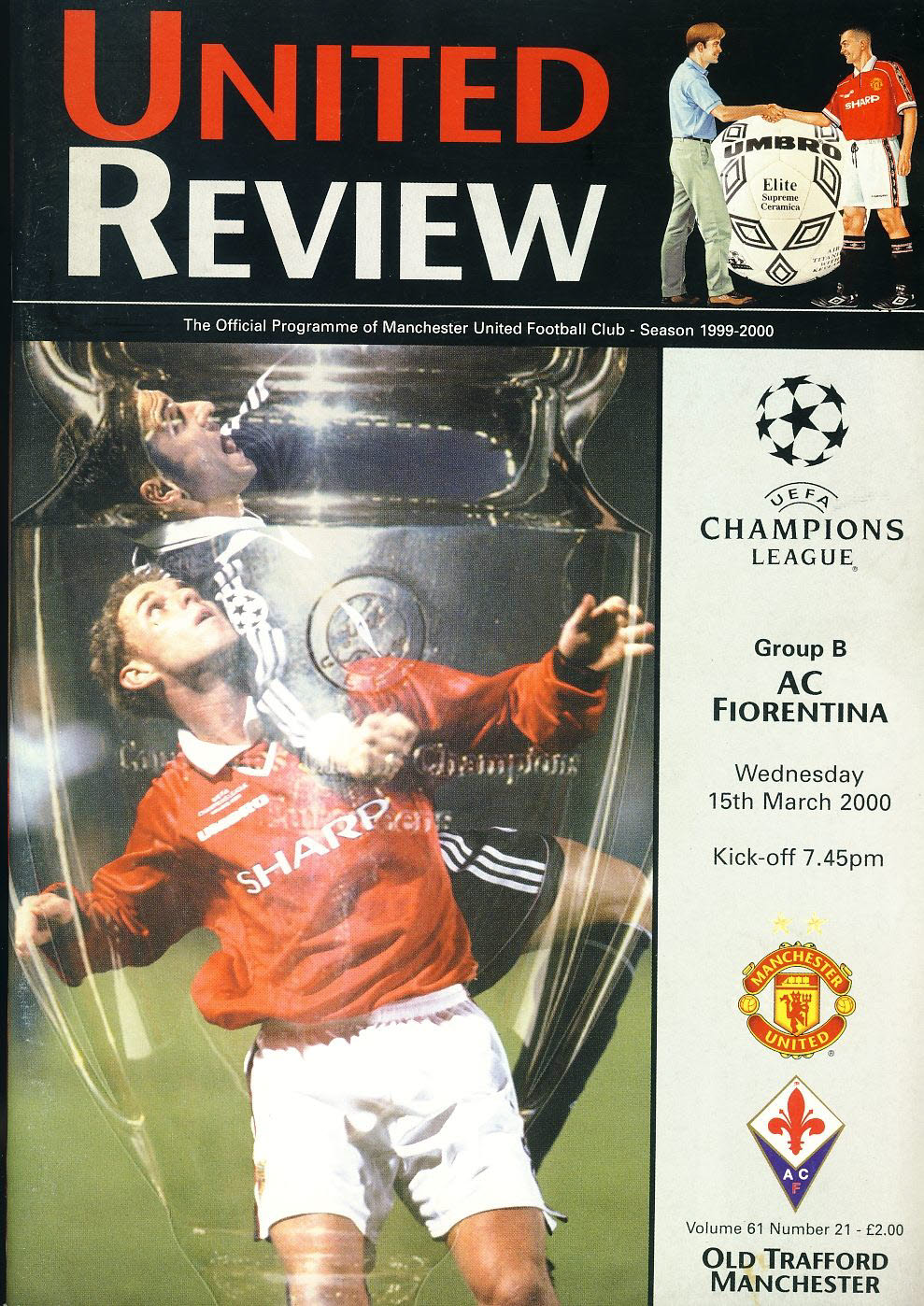 15th March 2000 Mancester Utd v. AC FIORENTINA United Review Football Programme ref100106
