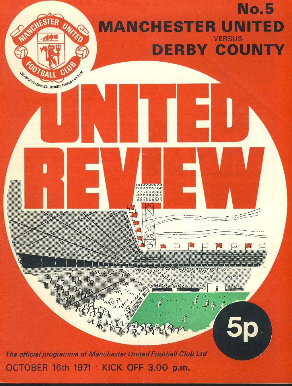 16 Oct 1971 Manchester Utd vs DERBY COUNTY United Review Official Programme ref10003