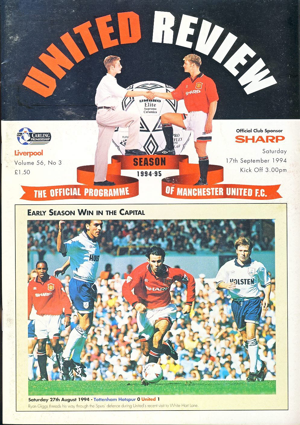 17th Sept 1994 Manchester Utd vs Liverpool Official Programme PAUL PARKER centre photo ref100109 Vintage publication as listed and shown in the photo. Please read full description for condition report.