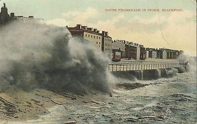1909 Vintage Blackpool POSTCARD South Promenade in Storm box1