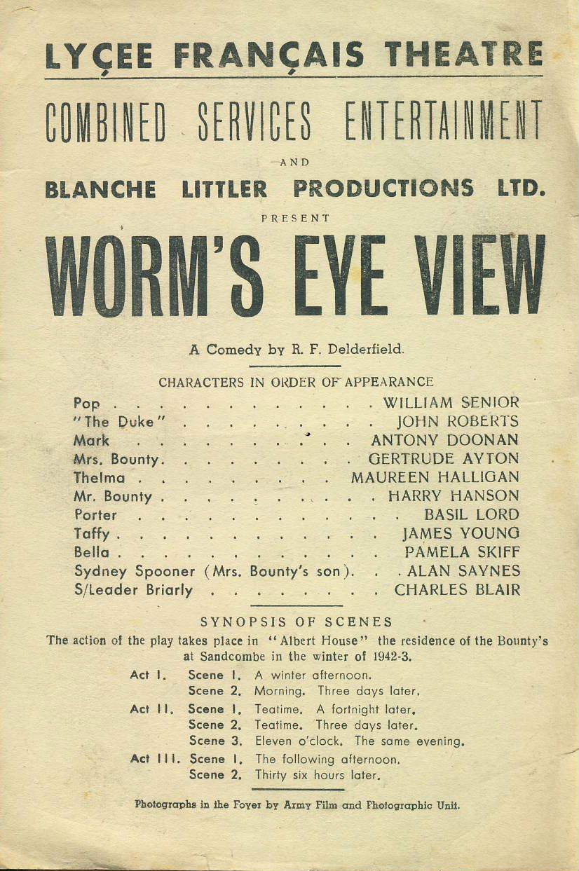 1940s Flyer Worm’s Eye View Combined Services Entertainment Lycee Francais Theatre refb1666