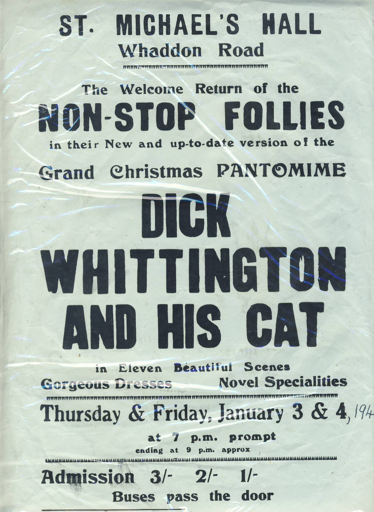 1946 St Michaels Hall Whaddon Dick Whittington and his Cat Pantomime flyer, photo & ticket c476