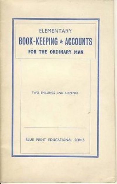 Vintage: Elementary Book-Keeping & Accounts for the Ordinary Man – two shillings and sixpence – Blue Print Educational Service – 1947