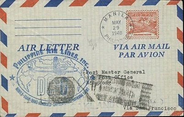 1948 Manila Philippines Airmail Air Letter US Savings Bonds San Francisco to HK