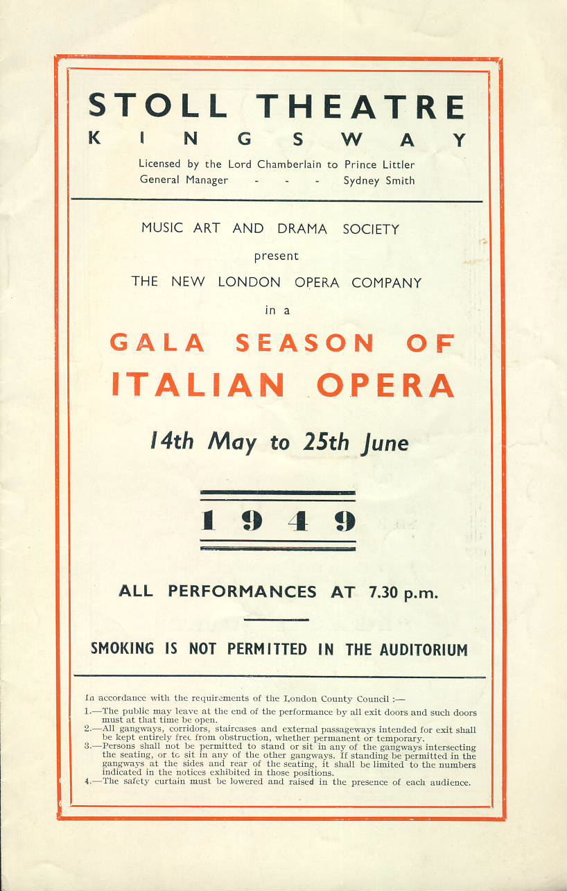1949 Gala Season of ITALIAN OPERA Stoll Theatre Kingsway Programme refb1679