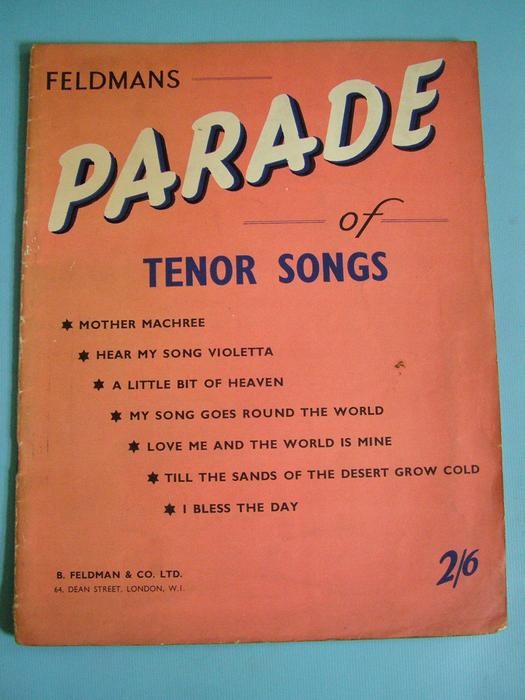 1959 Feldmans Parade of Tenor Songs sheet music and words
