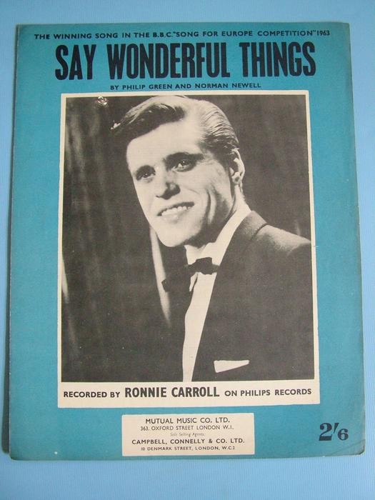 1963 Ronnie Carroll Song for Europe Winner Say Wonderful Things sheet music and words