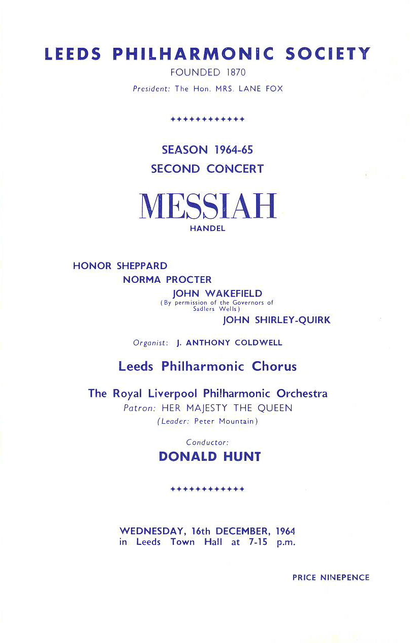 1964 Leeds Philharmonic MESSIAH vintage programme ref101597