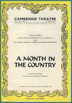 1965 Cambridge Theatre Emile Littler – A MONTH IN THE COUNTRY by Ivan Trugenev – English Version by Emlyn Williams – players – Ingrid Bergman, Michael Redgrave, Jeremy Brett – see below for cast