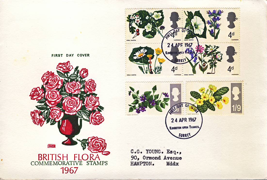 1967-04-24 British Wild Flowers Stamps FDC Philart Cover KINGSTON UPON THAMES refH110
