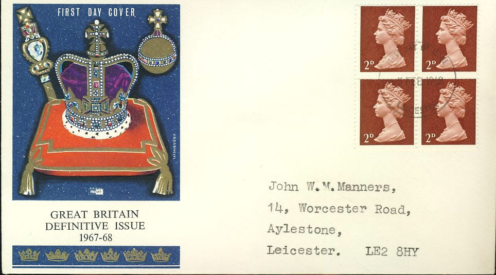 1967-68 Great Britain Definitive Issue 2d stamps cover FDI Leicester FDC refd489