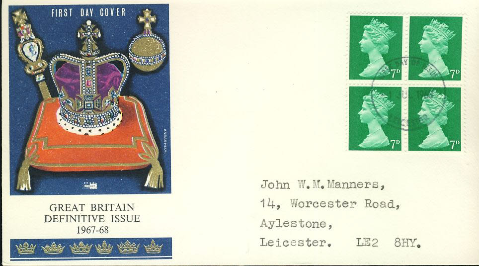 1967-68 Great Britain Definitive Issue 7d stamps cover fdi Leicester FDC refd491