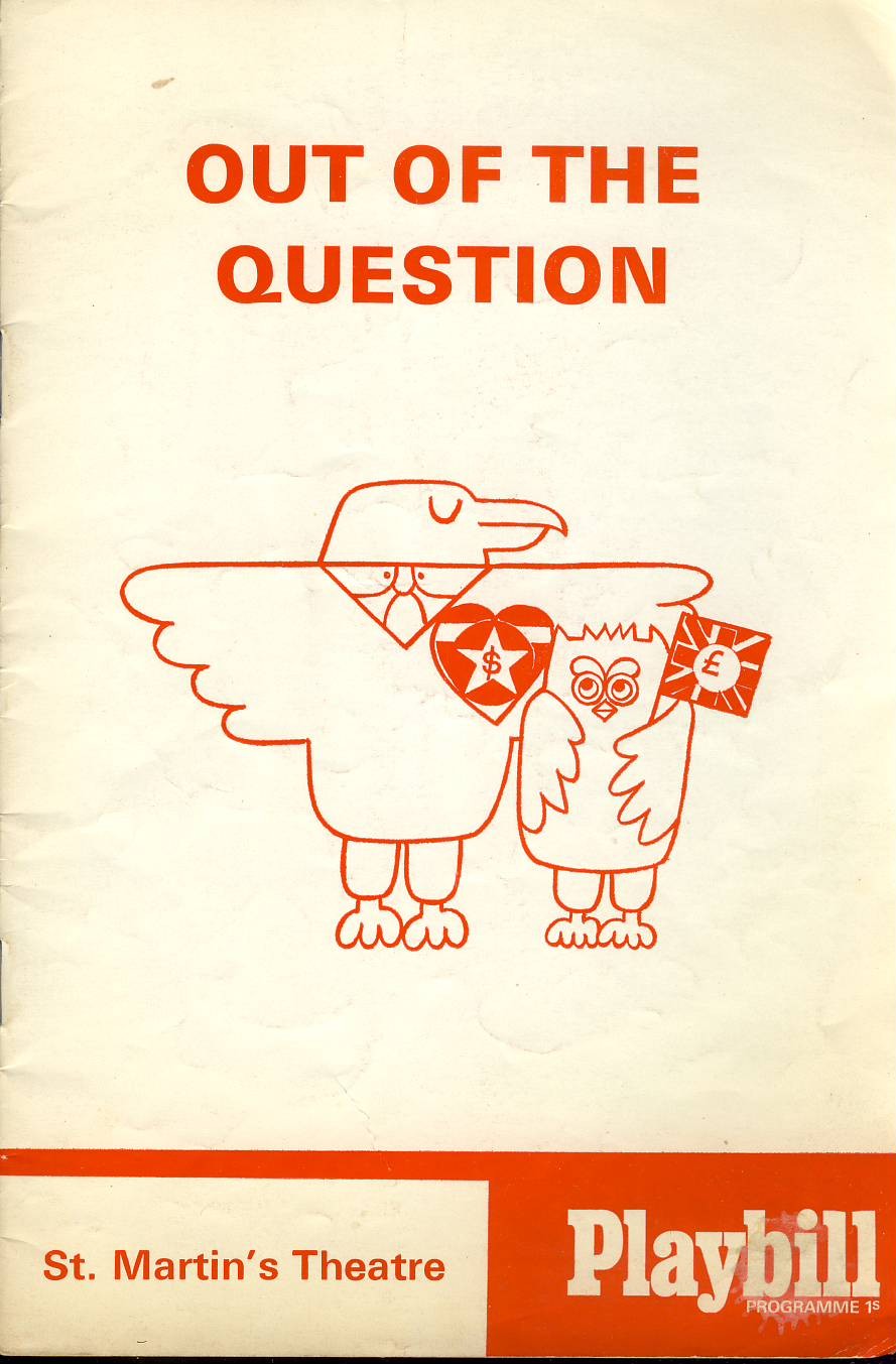 1968 Playbill OUT OF THE QUESTION St Martin’s Theatre programme r193