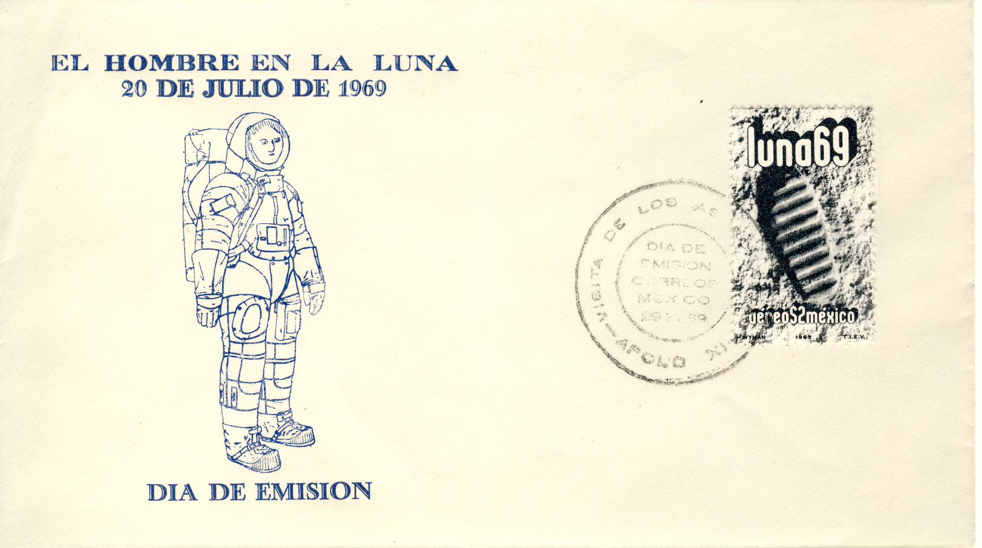 1969 First Man on the Moon mexico Stamp Dia de Emision Cover refG514