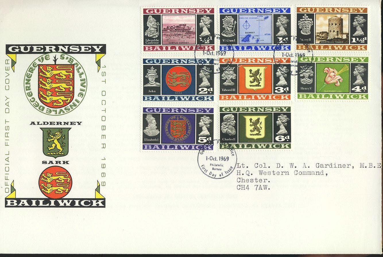 1969 GUERNSEY Bailiwich Definitive Stamps FDC refLSC14 In very good condition unsealed with insert card. Please see larger photo and full description for details.