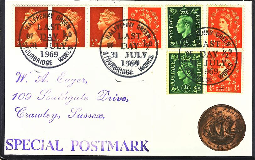 1969 Halfpenny Green Last Day 1/2d Stourbridge Special Postmark RIP postcard refP6-14