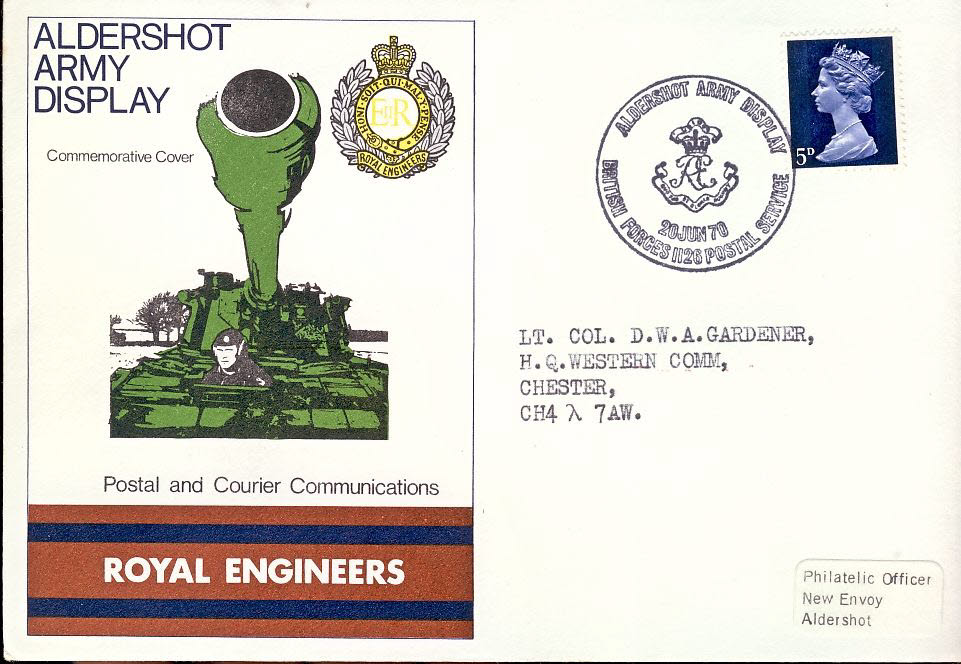 1970 British Forces Post Office 1126 Aldershot Army Display postal stamped cover refD209 In very good condition. With Insert Card. Please see larger photo and full description for details.
