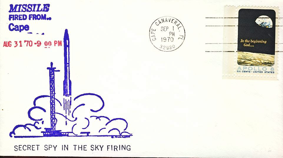 1970 Cape Canaveral Apollo 8 stamp cover SECRET SPY MISSIEL FIRING refd103
