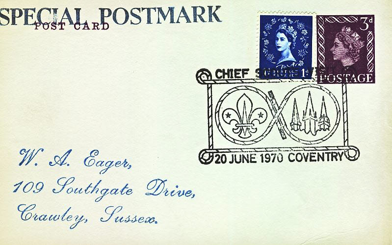 1970 Coventry Chief Scout’s Visit Special Postmark postcard refP6-16