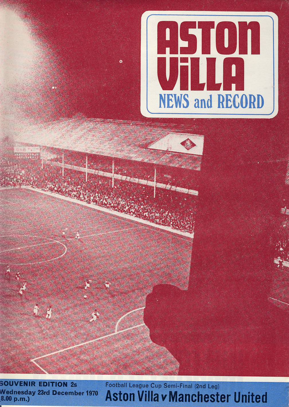 1970 December 23rd ASTON VILLA v MAN UTD Football League Cup Semi-Final Programme ref102093