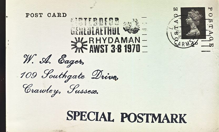 1970 Eisteddfod GENEDLAEYHOL Rhydaman AWST Special Postmark postcard refP6-3