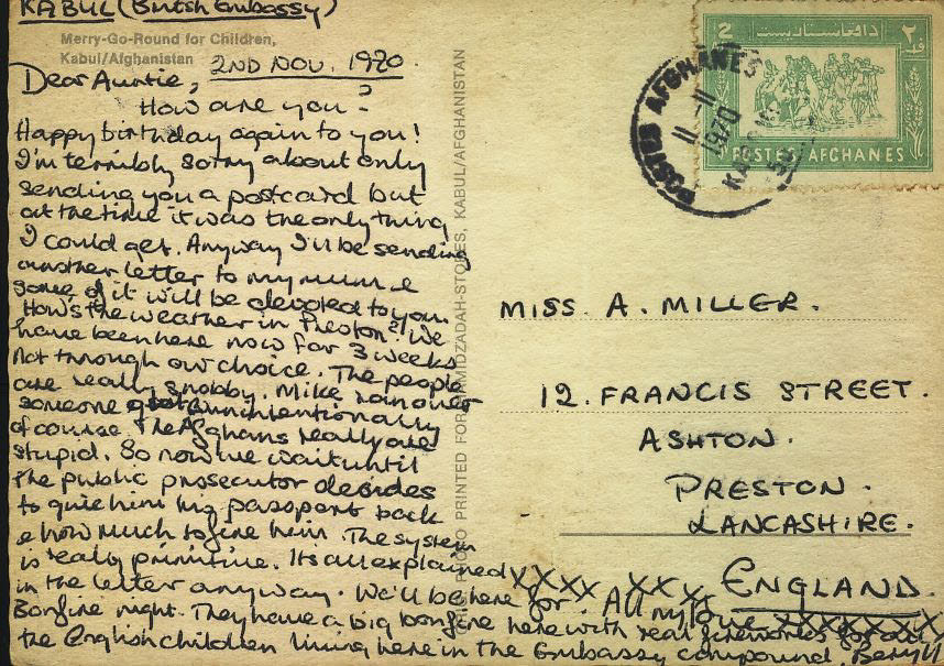 1970 KABUL British Embassy AFGHANISTAN written & posted Vintage Postcard refP1