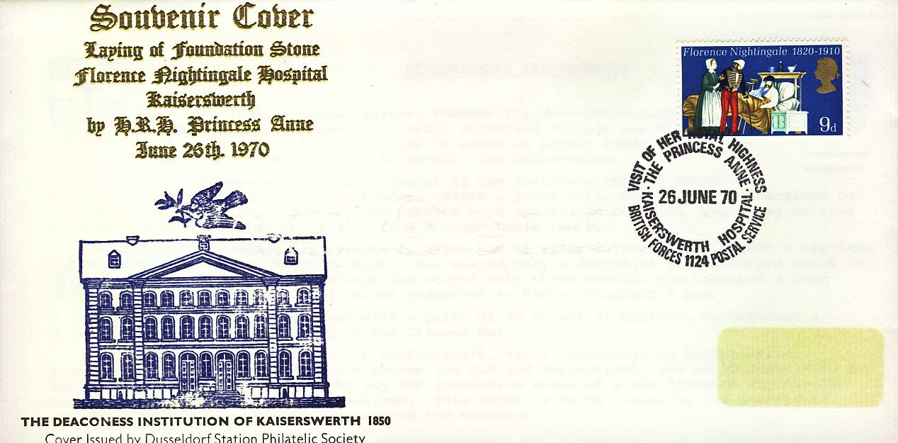 1970 Limited Edition KAISERSWERTH Florence Nightingale Hospital Souvenir Cover HRH Princess Anne BFPO 1124 numbered refd52
