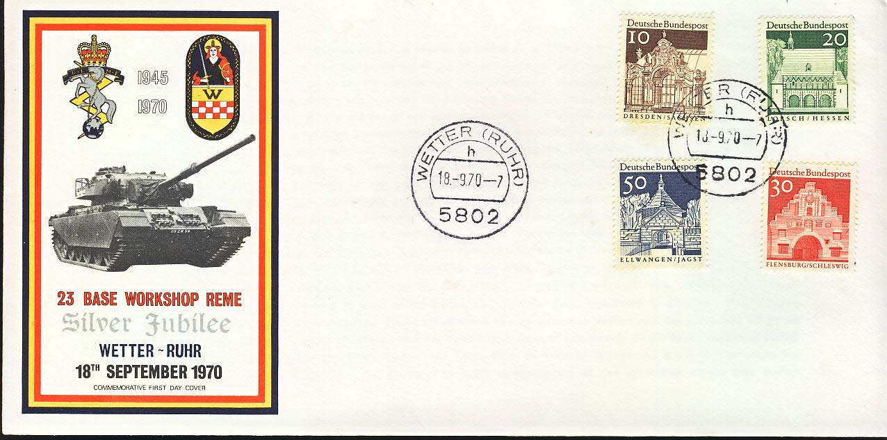 1970 Wetter Ruhr Deutsche Bunderpost FDC Tanks 23 Base Workshop REME refd40