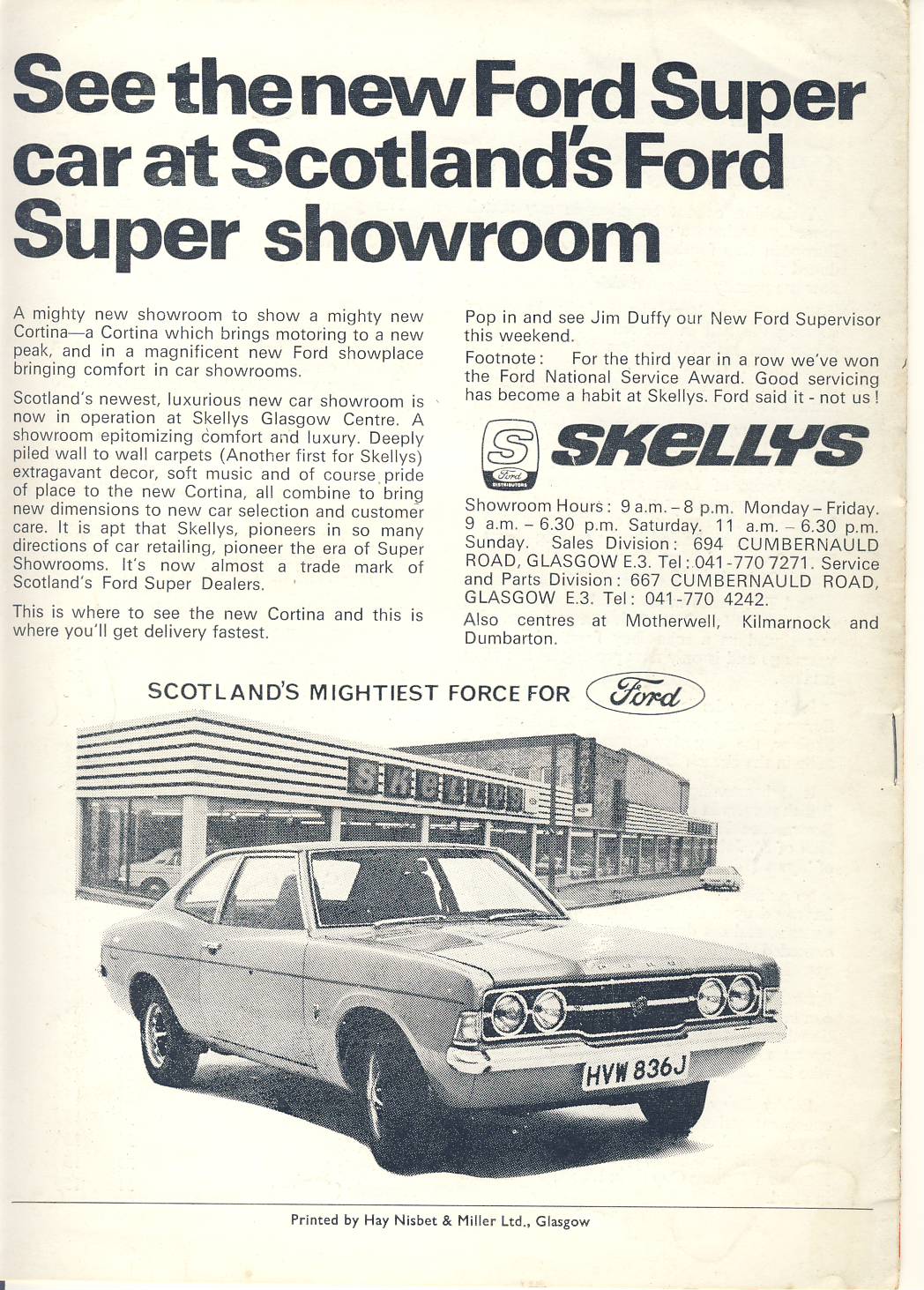 Hampden Park Glasgow Programme in good read condition. Good advert on back page for new FORD Cortina Car at Skellys Scotlan’s Ford Super Showroom.