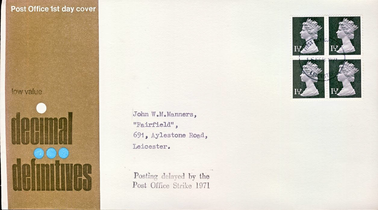 1971 Postal Strike 1 1/2p Decimal Definitives Stamps First Day Cover LEICESTER refcd429