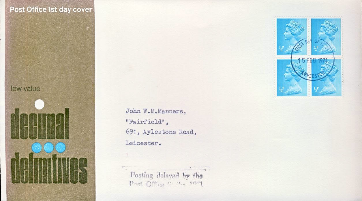 1971 Postal Strike 1/2p Decimal Definitives Stamps First Day Cover LEICESTER fdi refcd423