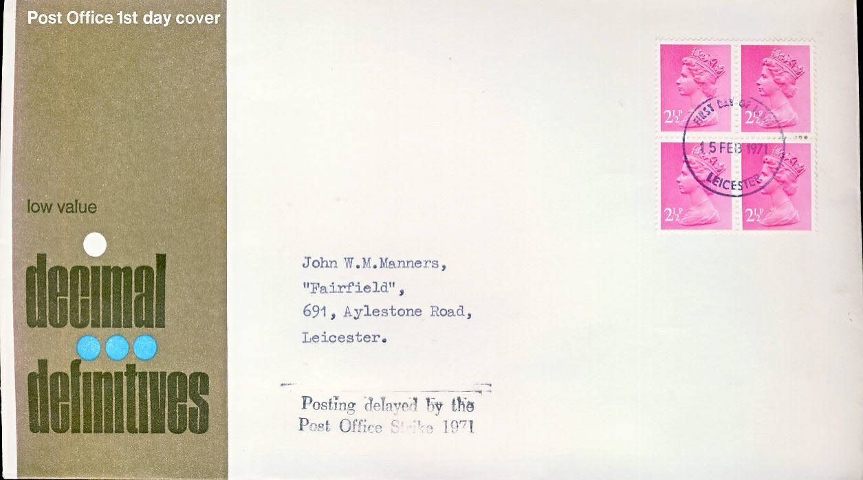 1971 Postal Strike 2 1/2p Decimal Definitives Stamps First Day Cover LEICESTER fdi refcd433