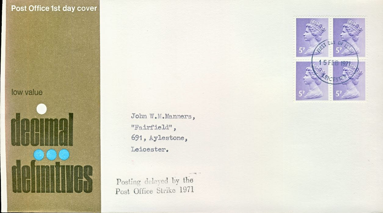 1971 Postal Strike 5p Decimal Definitives Stamps First Day Cover LEICESTER fdi refcd4