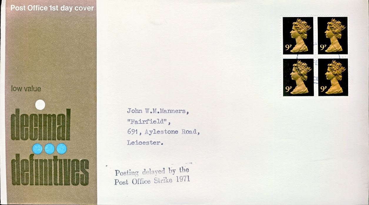 1971 Postal Strike 9p Decimal Definitives Stamps First Day Cover LEICESTER fdi refcd424