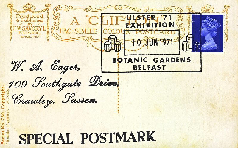 1971 ULSTER EXHIBITION Botanic Gardens BELFAST Special Postmark postcard refP6-22