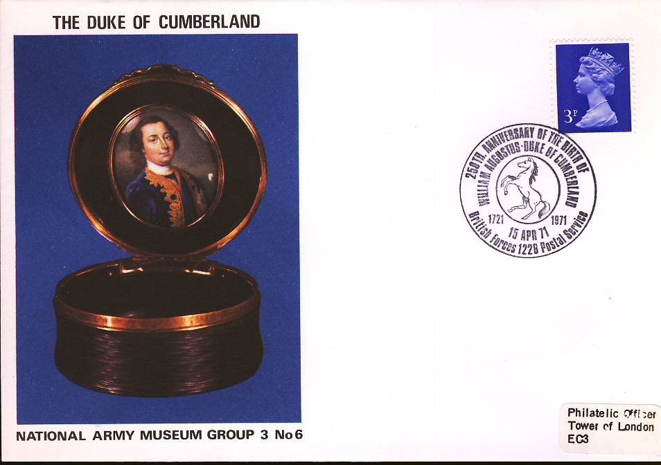 1971 William Augustus Duke of Cumberland BFPO British Forces Postal Service 1228 dated 15 April 1971. National Army Museum Cover refB52