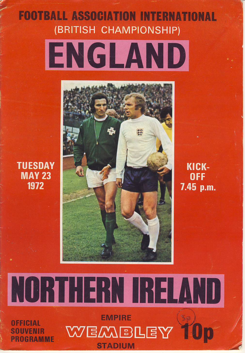 1972 ENGLAND v NORTHERN IRELAND FA Wembley Souvenir Football Progamme ref103004