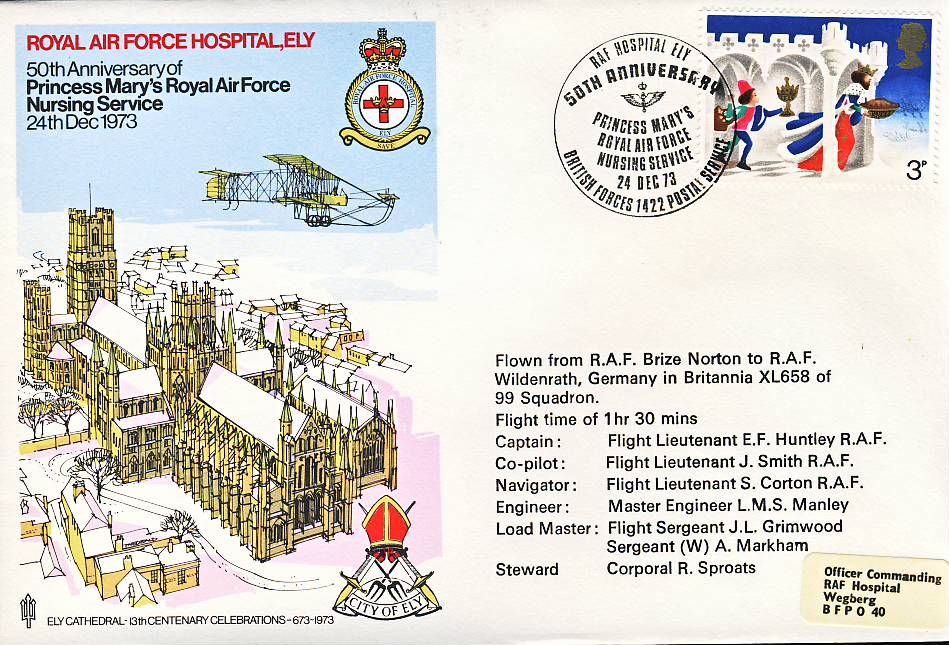 1973 50th Anniversary Princess Mary’s RAF Nursing Service flown stamp cover BFPO 1422 refF186 Unsealed no insert.