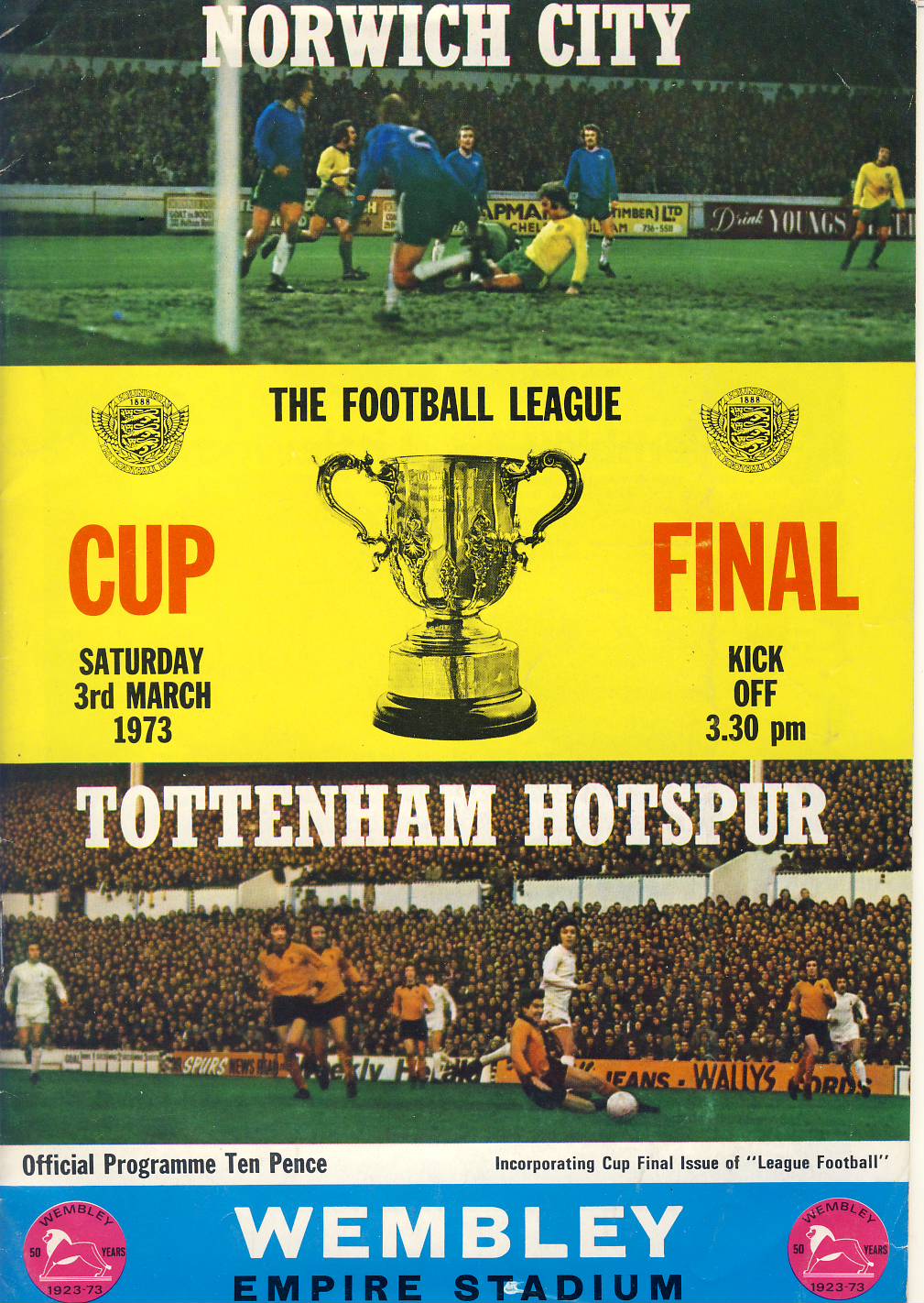 1973 March 3rd NORWICH v TOTTENHAM HOTSPUR Cup Final Football Programme ref102087