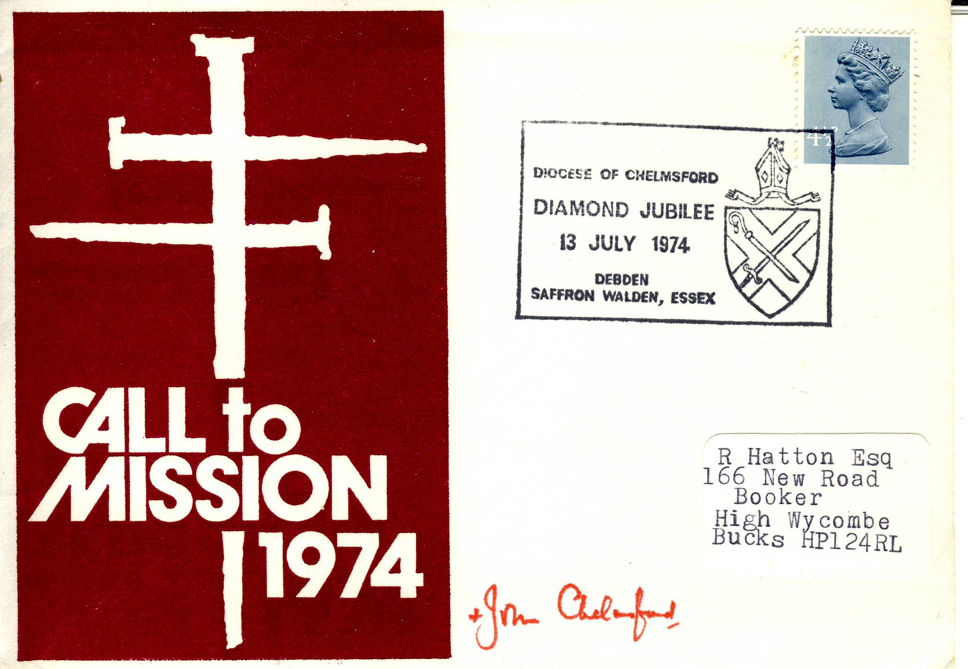 1974-07-13 Diamond Jubilee Diocese of Chelmsford Debden Commemorative Cover refG601