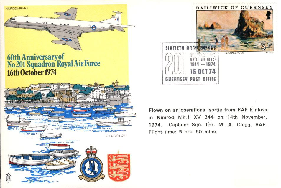 1974 GUERNSEY Post Office RAF flown stamp cover KINLOSS in Nimrod Mk.1 XV 244 refE78 Cover & Stamp Cover in very good condition. Unsealed – with insert. Please see larger photo and full description for details.