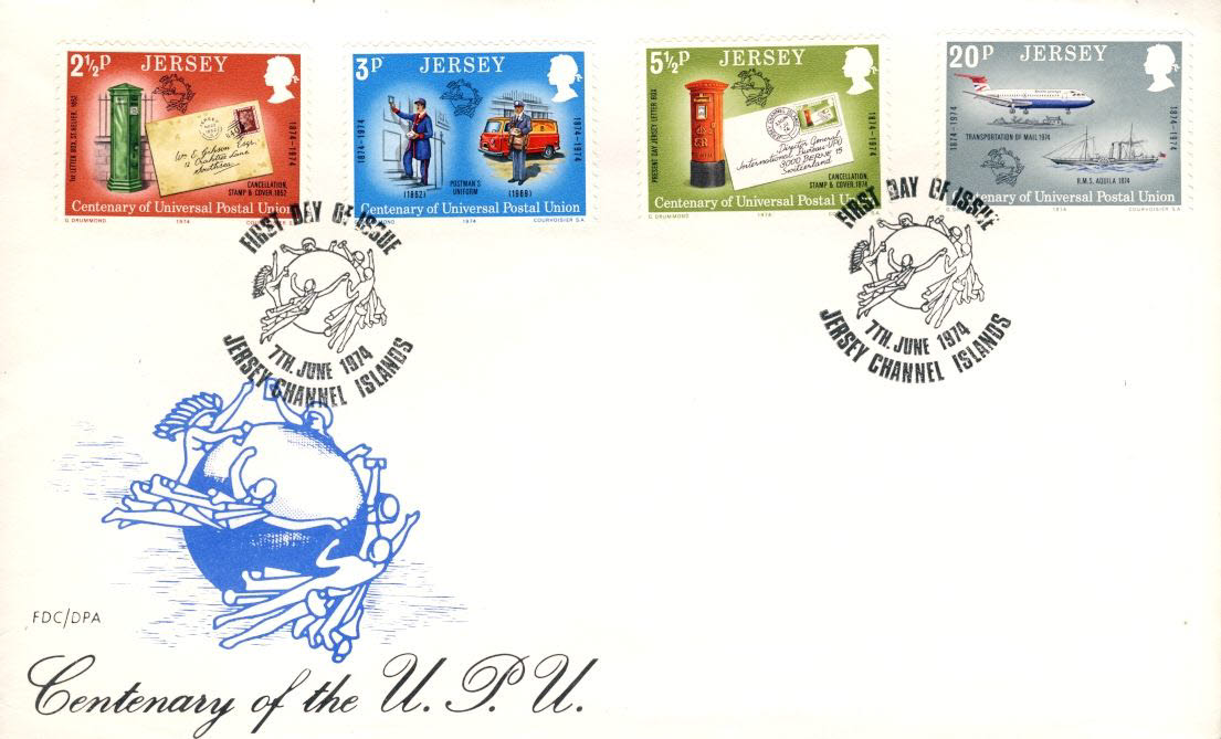 1974 Jersey Channel Islands Centenary of Universal Postal Union FDC stamps Cover refE101116