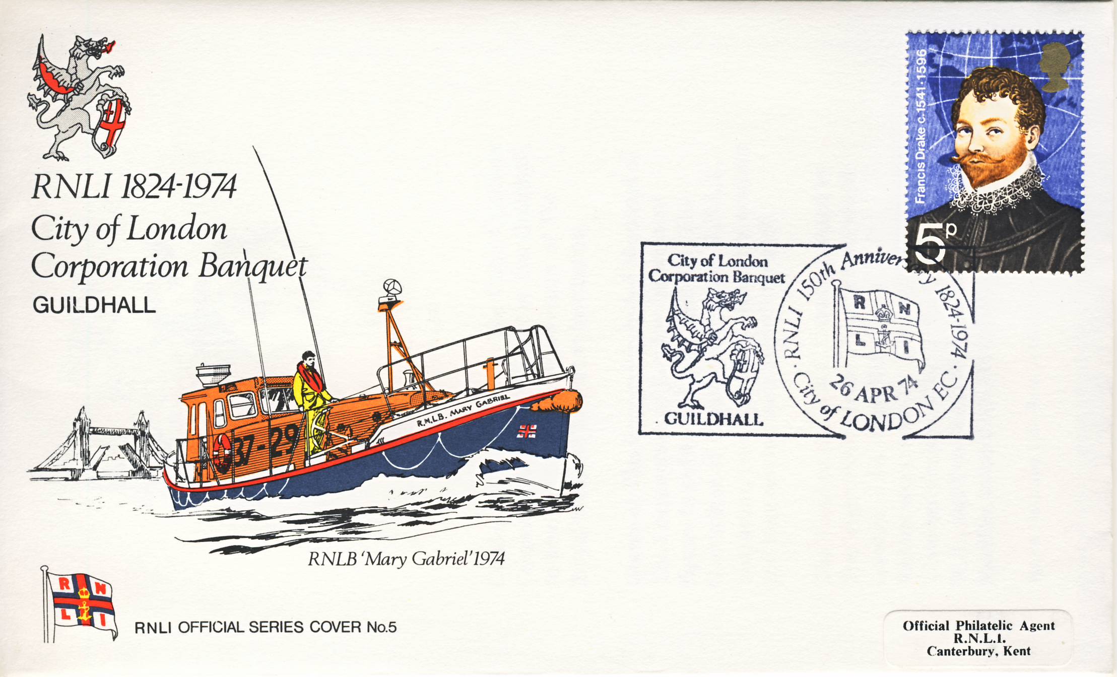 1974 RNLI Official Cover No.5 City of London Corporation Banquet RNLB Mary Gabriel