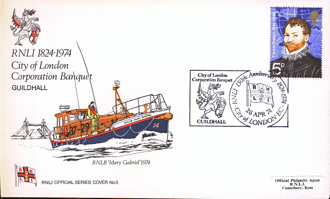 1974 RNLI Official Series Cover no.5 RNLB Mary Gabriel City of London Guildhall refA419
