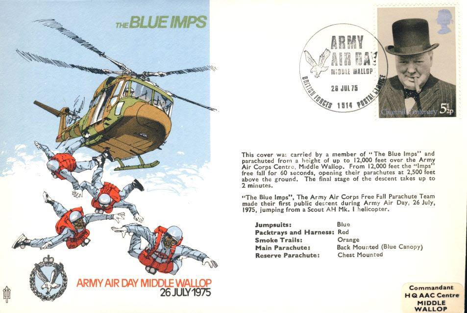 1975 BLUE IMPS flown WINSTON CHURCHILL stamp cover ARMY AIR DAY BFPO 1914 Middle Wallop refE114