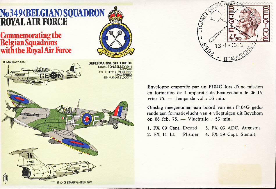 1975 no349 Belgian Squadron RAF flown stamp cover BELGIUQUE 5998 refF137