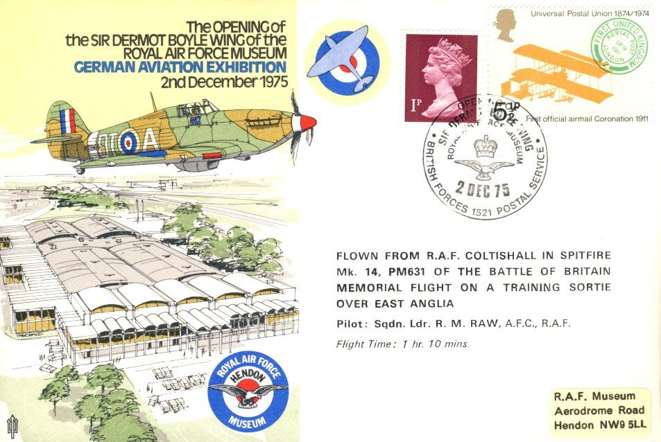1975 RAF Colishall flown stamp cover SPITFIRE Mk.14 PM631 Battle of Britain Memorial Flight BFPO 1521 refE79