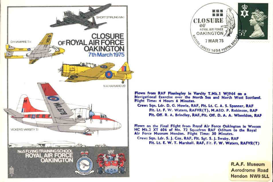 1975 RAF OAKINGTON closure flown stamp cover BFPO 1494 refE105 Cover & Stamp in very good condition. Unsealed – with insert. Please see larger photo and full description for details.
